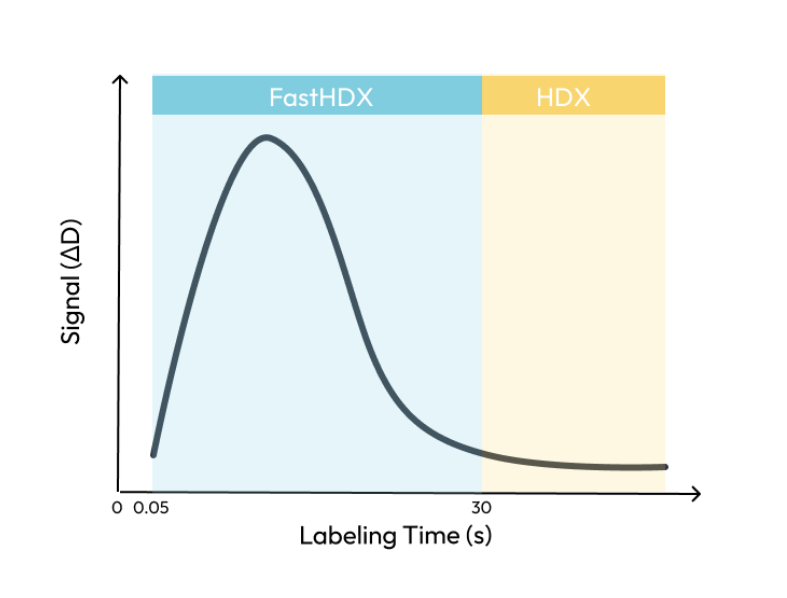 Deuterium uptake in disordered proteins and peptides, rapid small molecule binding and transient conformational changes occur within milliseconds. With a minimum labeling time of 30 seconds, traditional HDX is unable to capture these events, creating development blind spots.