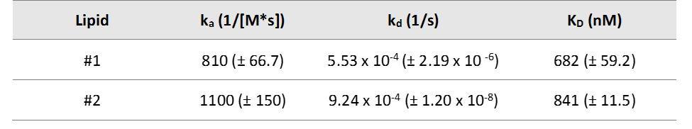 Table 1. Kinetic constants determined using SPR for protein-lipid interactions