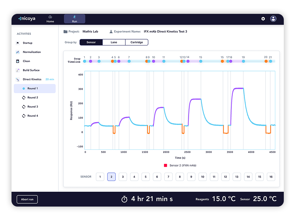 Alto’s comprehensive software provides a centralized hub for acquisition and analysis of real-time binding data, while offering an intuitive user interface, one-click assay analysis, and the flexibility of accessing and sharing your experiments from anywhere.