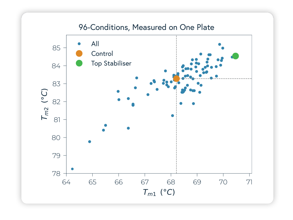 Plate-based intrinsic DSF (differential scanning fluorimetry) delivers clearer stability insights faster, more affordably, and directly in your standard microplate workflow.