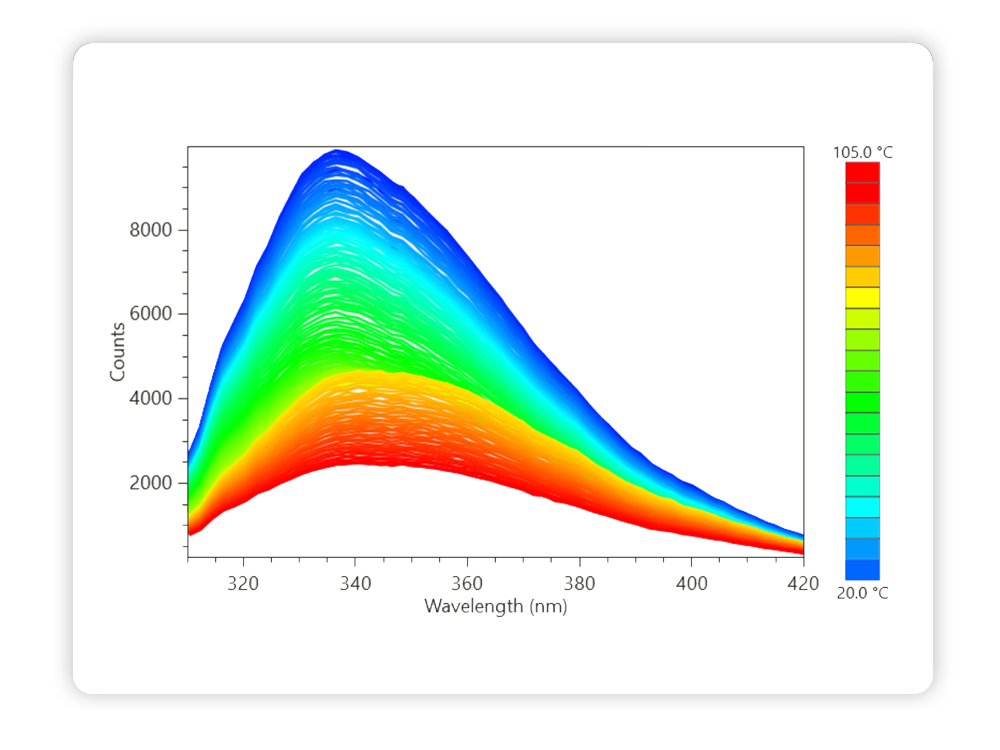 By capturing the complete intrinsic fluorescence spectrum across the full temperature range, SUPR-DSF reveals subtle stability differences others miss. Rich, high-integrity data enables flexible analysis approaches and confident decision-making, even at therapeutic protein concentrations or in challenging formulations.